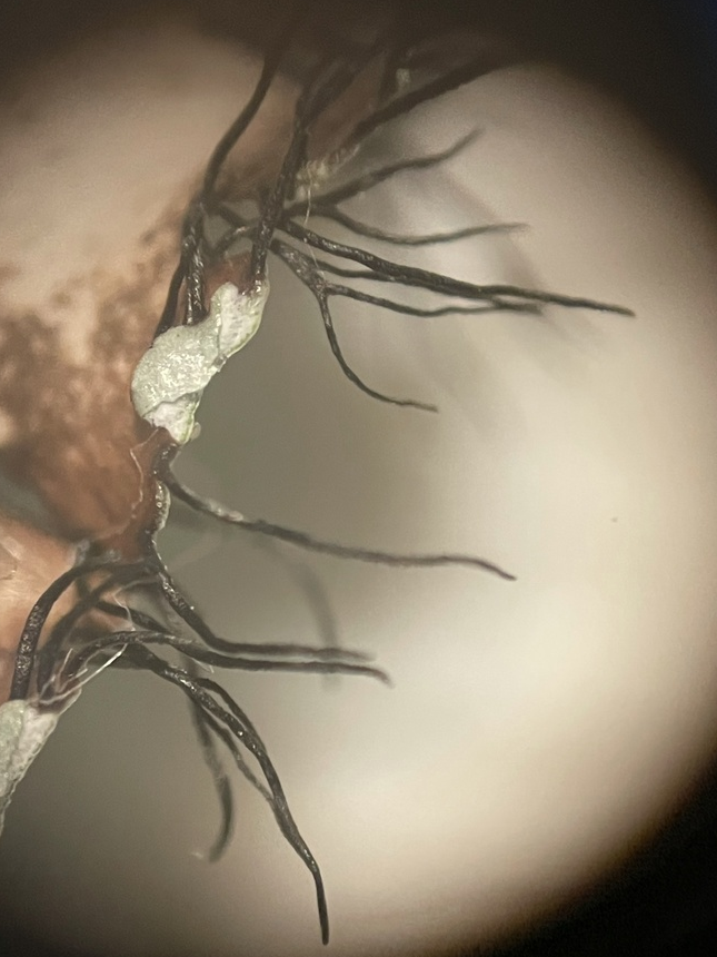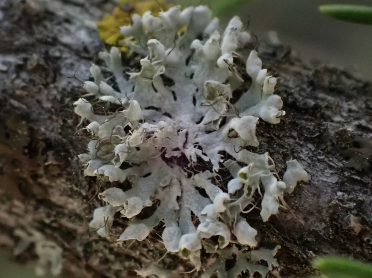 An uncommon feature of Colorado Lichens, a trip to Eastern North America will yield many foliose species with cilia. Cilia are hair like structures at growing at the margins of a lichen. They could be mistaken for Rhizines, however rhizines serve to attach the lichen to a substrate and should be present on the lower surface of the lichen versus solely marginal.